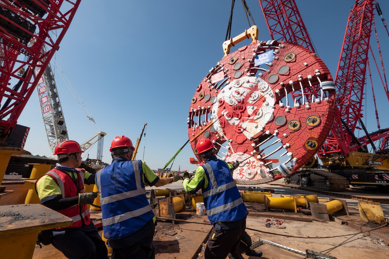 李建束12珠海隧道盾构机刀盘下井+鹤洲北